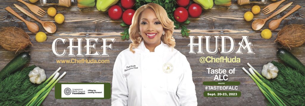 Chef Huda has been announced to host the “Taste of ALC” (September 20th-22nd), a series of Cooking Demonstrations and FireSide Chats presented each day during the Congressional Black Caucus Foundation’s 52nd Annual Legislative Conference, Sept. 20-24, 2023 at the Washington D.C. Convention Center. Chef Huda has invited celebrated guest chefs, restaurants, celebrities, influencers, athletes, and dignitaries to join her on stage for entertaining cooking demos and lots of fun. Confirmed guests include icon Virgina Ali (Ben’s Chili Bowl Co-Founder), Wanda Durant (The Real MVP), Chef Rock Harper ( Restaurateur, James Beard Award Nominee)and more to be announced.